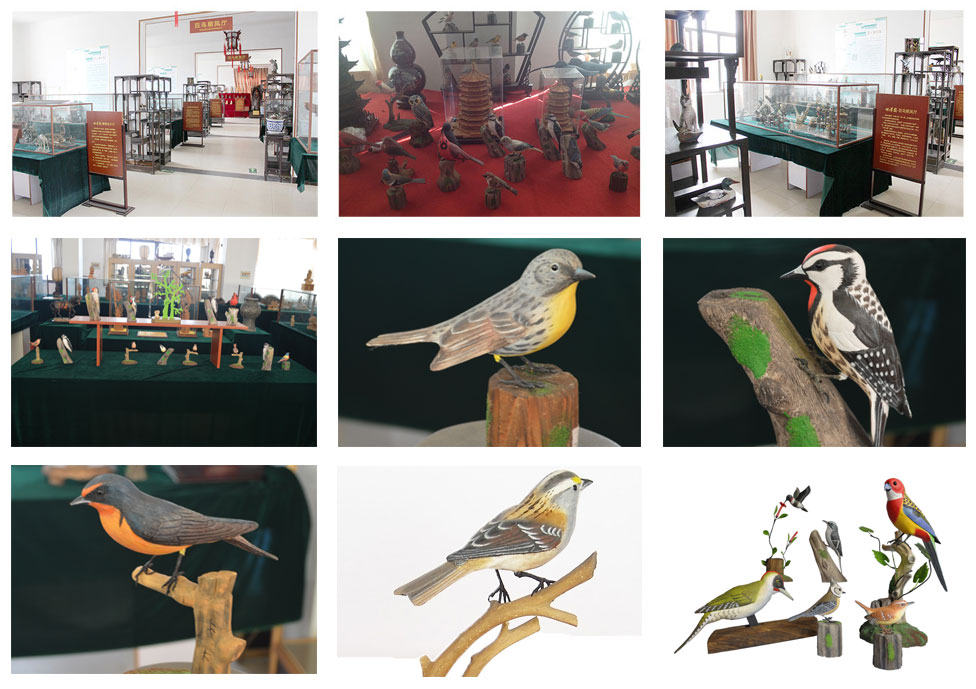 選送作品《百鳥朝鳳》采用泰州傳統(tǒng)的彩繪木雕工藝。通過在木雕上繪上各種顏色,讓鳥幾可亂真。由于鳥的羽毛紋理采用了微雕工藝,摸上去的手感也和真的羽毛模一樣,配上相宜的樹樁底座或蘆葦葉,色彩艷麗。層次豐富,惟妙惟肖、淋漓盡致,達(dá)到了“精而不繁”“靜中含動(dòng)”的效果。